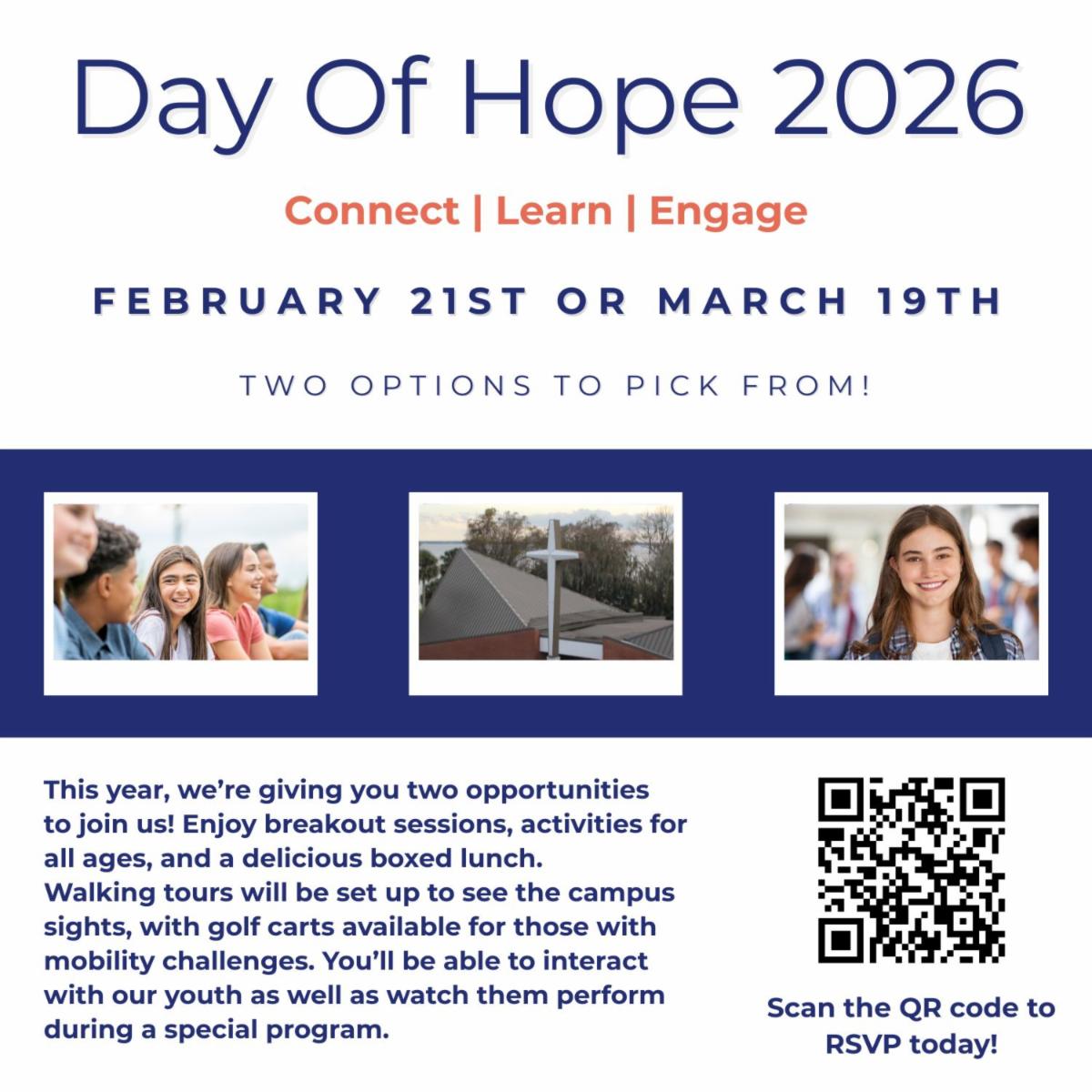 Join us for a Day of Hope on Saturday, February 21 or Thursday, March 19 at our Enterprise campus. This year we are giving you two opportunities to join us!