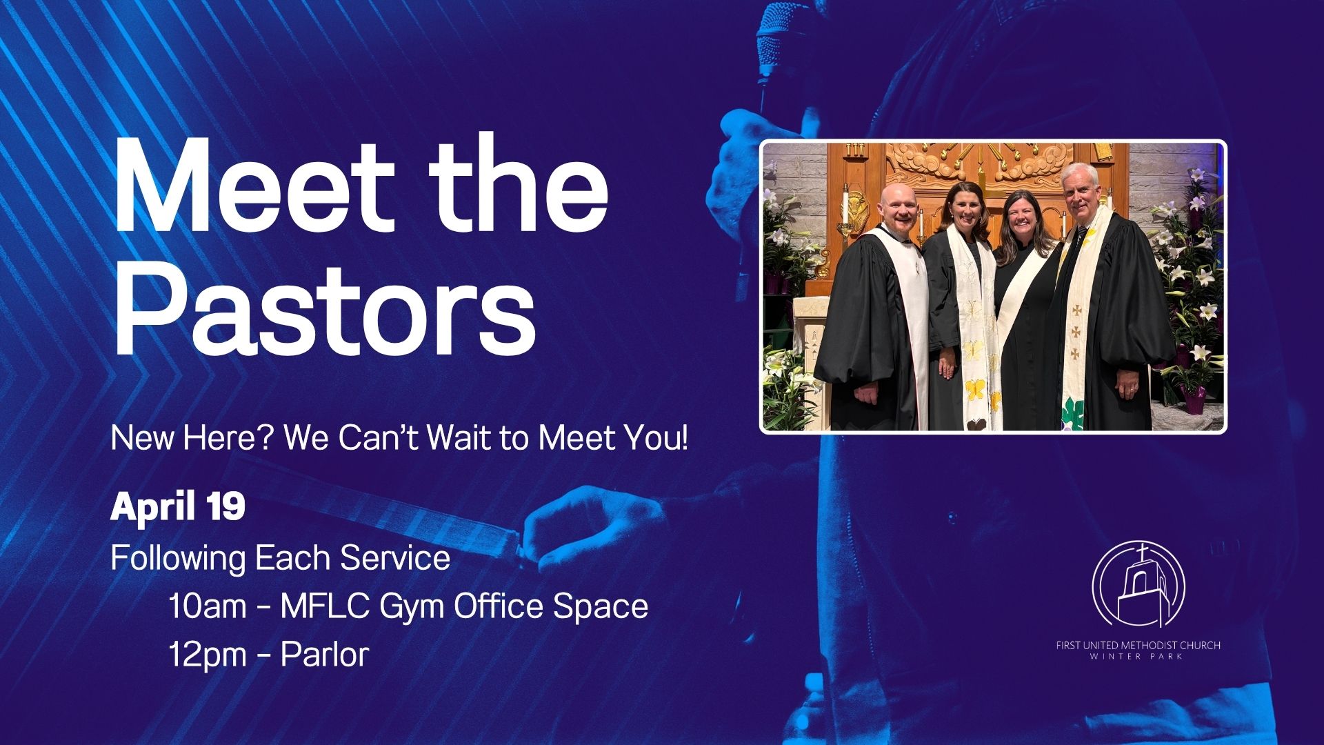 If you’re new or visiting, we would love to meet you! Join us for Meet the Pastors on Sunday, April 19—a casual gathering where you can connect with our pastors, learn more about the heart and mission of our church, and ask any questions you may have. It’s a relaxed way to begin building relationships and discover ways to get connected.